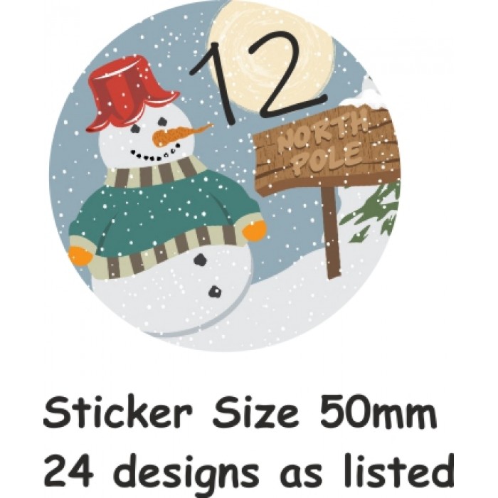 24 Advent Calendar Stickers Boys or Girls Countdown to Christmas