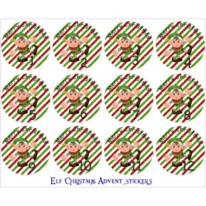 24 Elf Christmas Advent Calendar Stickers & 24 Paper Red Bags Boys or Girls