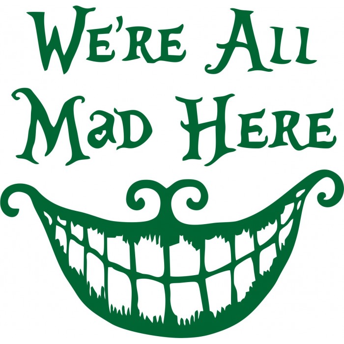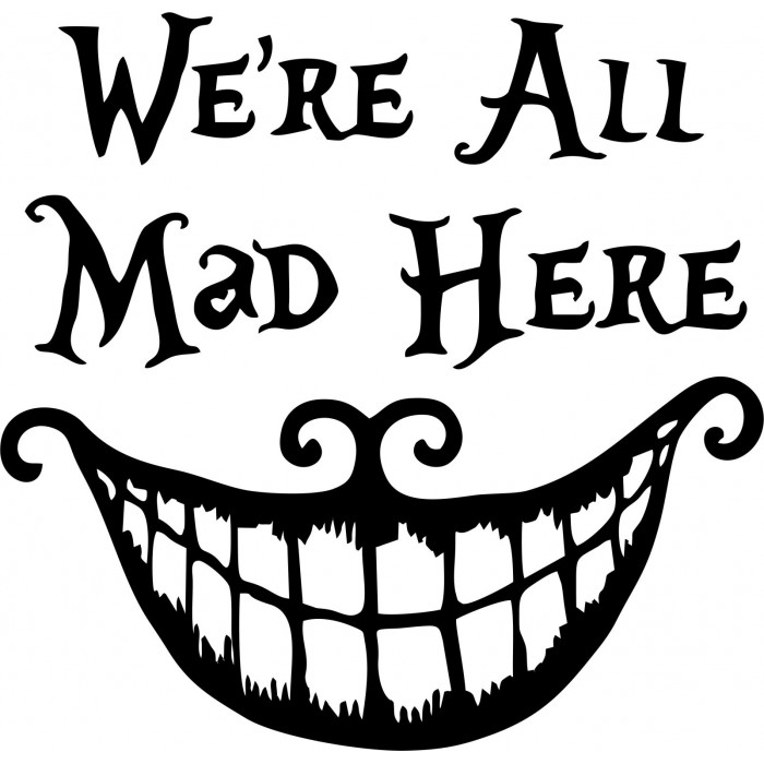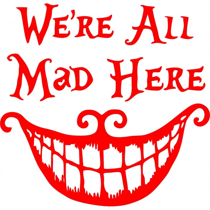 Alice In Wonderland Quote Cheshire Cat "We're All Mad Here" Vinyl wallart decal