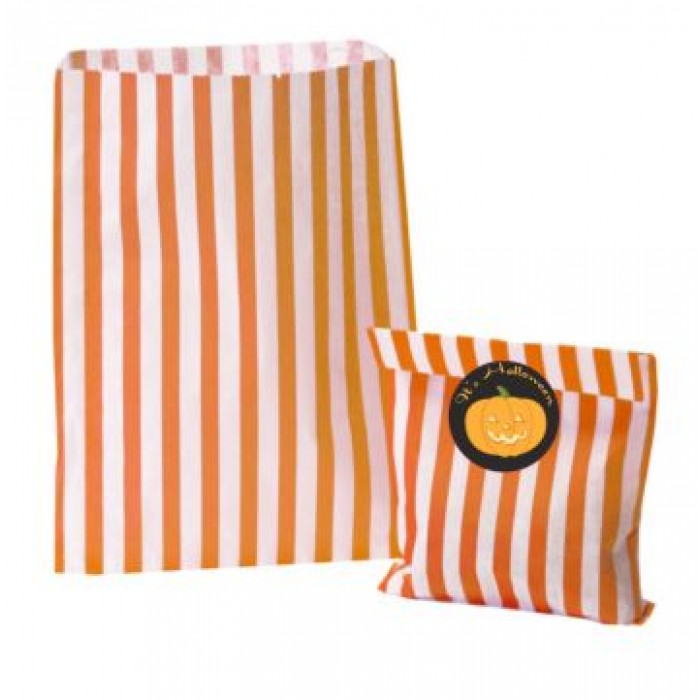 Happy Halloween Orange Striped Bags & 26 Stickers for Trick Or Treat Party